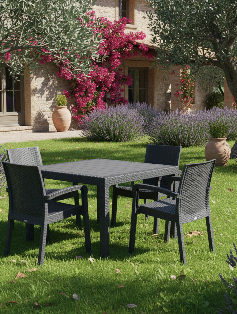 Τα τραπέζια και οι καρέκλες με σχέδιο rattan της TERRAZZA Collection της MADI αποτελούν μια πρακτική και κομψή λύση για κάθε εξωτερικό χώρο. Ο σχεδιασμός τους προσφέρει την αισθητική της φυσικής πλέξης rattan, ενώ η κατασκευή από ανθεκτικό πλαστικό εξασφαλίζει μεγάλη αντοχή στη χρήση και στις καιρικές συνθήκες.