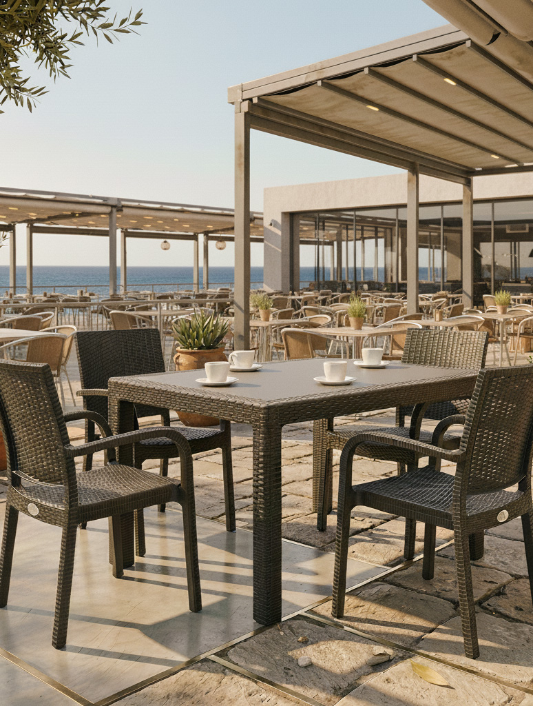 Είναι ιδανικά τόσο για το σπίτι – όπως αυλές, κήπους, μπαλκόνια και εξοχικές κατοικίες – όσο και για επαγγελματικούς χώρους όπως καφετέριες, ταβέρνες και χώρους εστίασης που χρειάζονται άνετα και ανθεκτικά έπιπλα για καθημερινή χρήση. Συνδυάζουν ελαφριά κατασκευή, εύκολο καθάρισμα και μοντέρνα εμφάνιση, προσφέροντας μια αξιόπιστη και καλαίσθητη επιλογή για κάθε χώρο φιλοξενίας.