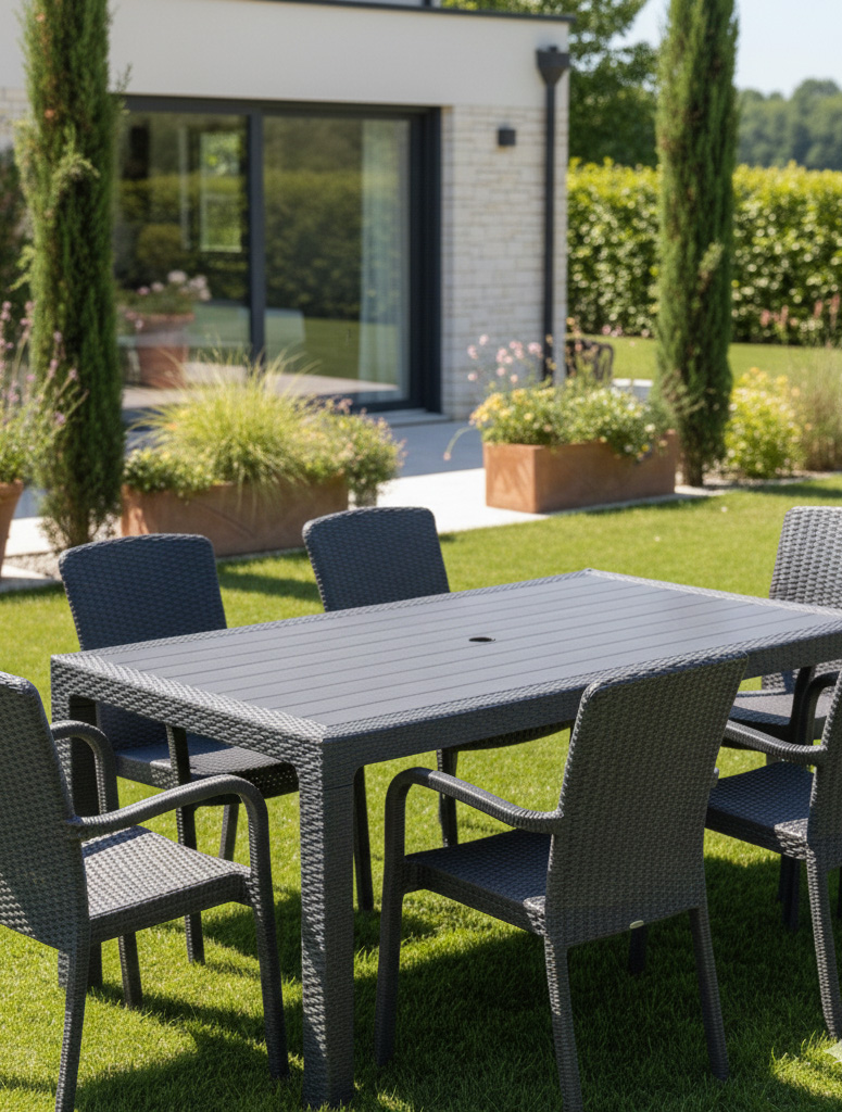 Τα τραπέζια και οι καρέκλες με σχέδιο rattan της TERRAZZA Collection της MADI αποτελούν μια πρακτική και κομψή λύση για κάθε εξωτερικό χώρο. Ο σχεδιασμός τους προσφέρει την αισθητική της φυσικής πλέξης rattan, ενώ η κατασκευή από ανθεκτικό πλαστικό εξασφαλίζει μεγάλη αντοχή στη χρήση και στις καιρικές συνθήκες.