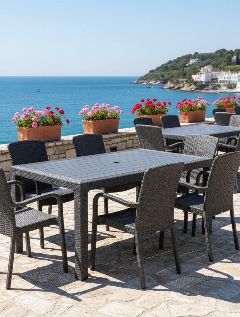 Είναι ιδανικά τόσο για το σπίτι – όπως αυλές, κήπους, μπαλκόνια και εξοχικές κατοικίες – όσο και για επαγγελματικούς χώρους όπως καφετέριες, ταβέρνες και χώρους εστίασης που χρειάζονται άνετα και ανθεκτικά έπιπλα για καθημερινή χρήση. Συνδυάζουν ελαφριά κατασκευή, εύκολο καθάρισμα και μοντέρνα εμφάνιση, προσφέροντας μια αξιόπιστη και καλαίσθητη επιλογή για κάθε χώρο φιλοξενίας.